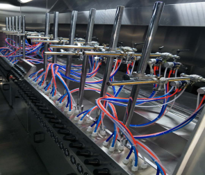 地軌式自動(dòng)噴涂線介紹地軌式自動(dòng)噴涂線也叫固定噴槍噴涂線或spindle自動(dòng)噴涂線,原理就是把噴槍固定起來,根據(jù)工藝要求進(jìn)行噴涂。其功能集地面自動(dòng)輸送線,固定自動(dòng)噴涂,自動(dòng)烘干T等一體化系統(tǒng),并結(jié)合無塵凈化車間,恒溫控制,廢氣處理系統(tǒng)組成,可以根據(jù)需求設(shè)計(jì)兩涂?jī)煽荆咳荆耐克目荆偌由蟄V固化設(shè)備。地軌式自動(dòng)噴涂線特點(diǎn)與優(yōu)勢(shì):1.起到靜電除塵,噴涂、烘干、UV固化自動(dòng)噴涂流水的功能,適合批量連續(xù)生產(chǎn),產(chǎn)量高,噴涂均勻。2.輸送鏈條與軌道接觸點(diǎn)配置軸承,配合精準(zhǔn)的軌道,運(yùn)轉(zhuǎn)時(shí)輕快平穩(wěn)不抖動(dòng),3.靜電除塵系統(tǒng),進(jìn)口高要靜電發(fā)生器,離子風(fēng)嘴可上下前后機(jī)械式調(diào)節(jié),可配合產(chǎn)品大小不同而變化,加上工件自動(dòng),除塵無360度死角。4.固定式自動(dòng)噴槍可用于步進(jìn)是或者聯(lián)系的在線噴涂,及簡(jiǎn)單又實(shí)用。采用工件高速自動(dòng)噴涂,行程及速度可調(diào)節(jié),靈活性大,無死角。5.水簾環(huán)保噴房設(shè)計(jì),氣流順暢潔凈,噴房室內(nèi)導(dǎo)流板機(jī)擾流板的精心配置,讓亂流遠(yuǎn)離工件,并快速循環(huán)利用。6.UV固化室內(nèi)設(shè)都說進(jìn)口等,任意調(diào)節(jié)照射距離與角度。可以任意選擇燈工作數(shù)量,根據(jù)照射強(qiáng)度選擇,工件自動(dòng)旋轉(zhuǎn)設(shè)計(jì),保證了工件照度均勻。好了,以上就是有關(guān)地軌式自動(dòng)噴涂線介紹,大家學(xué)會(huì)了嗎?